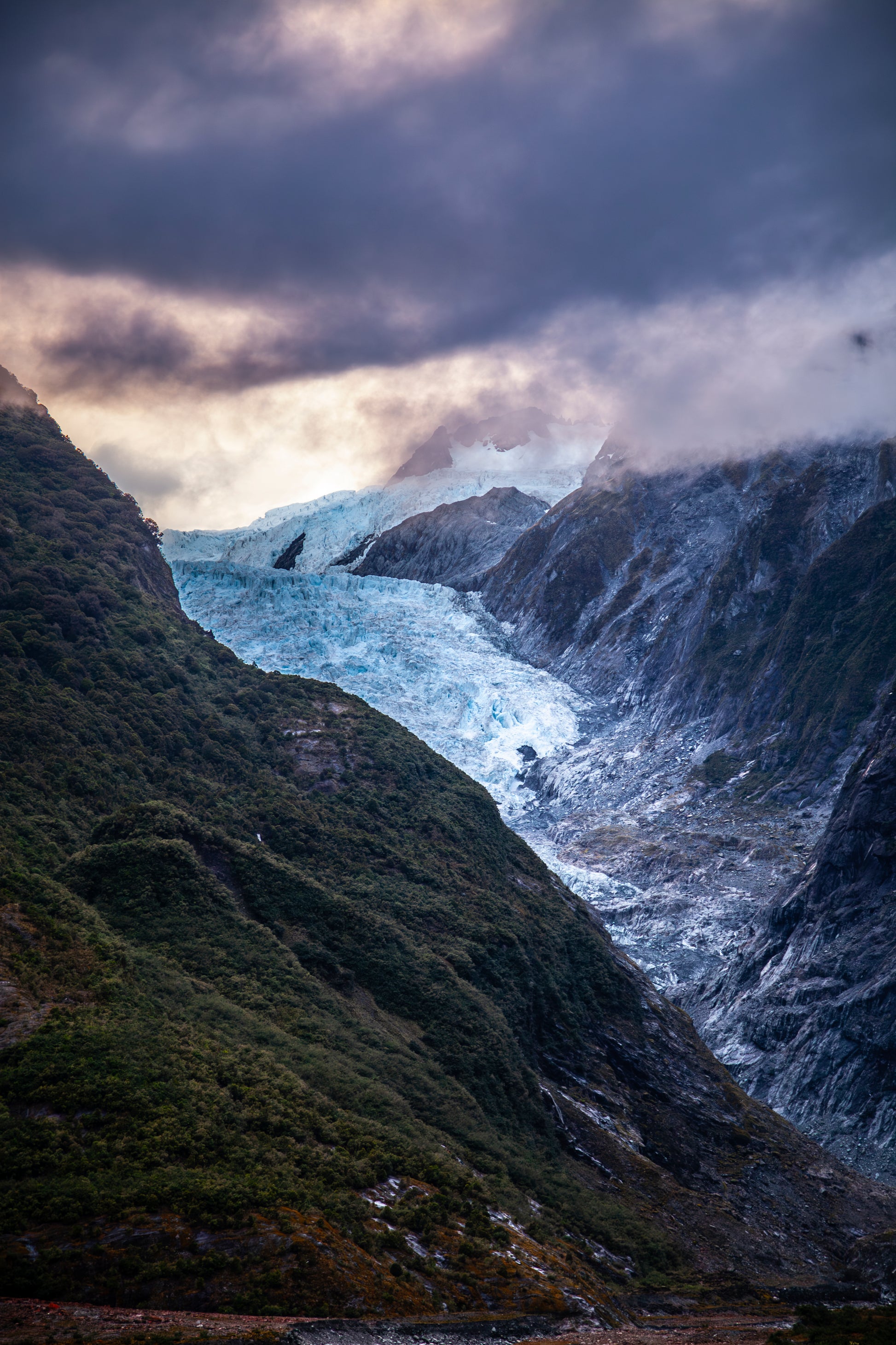 This stunning landscape located on the West Coast of New Zealand with magical atmosphere, the sun hiding in the last momento of the day as a warm background. The ice and the mountains are surrounded by a mystic difficult to explain until you explore the Maori myth, the story behind this beauty is mighty like the nature itself.