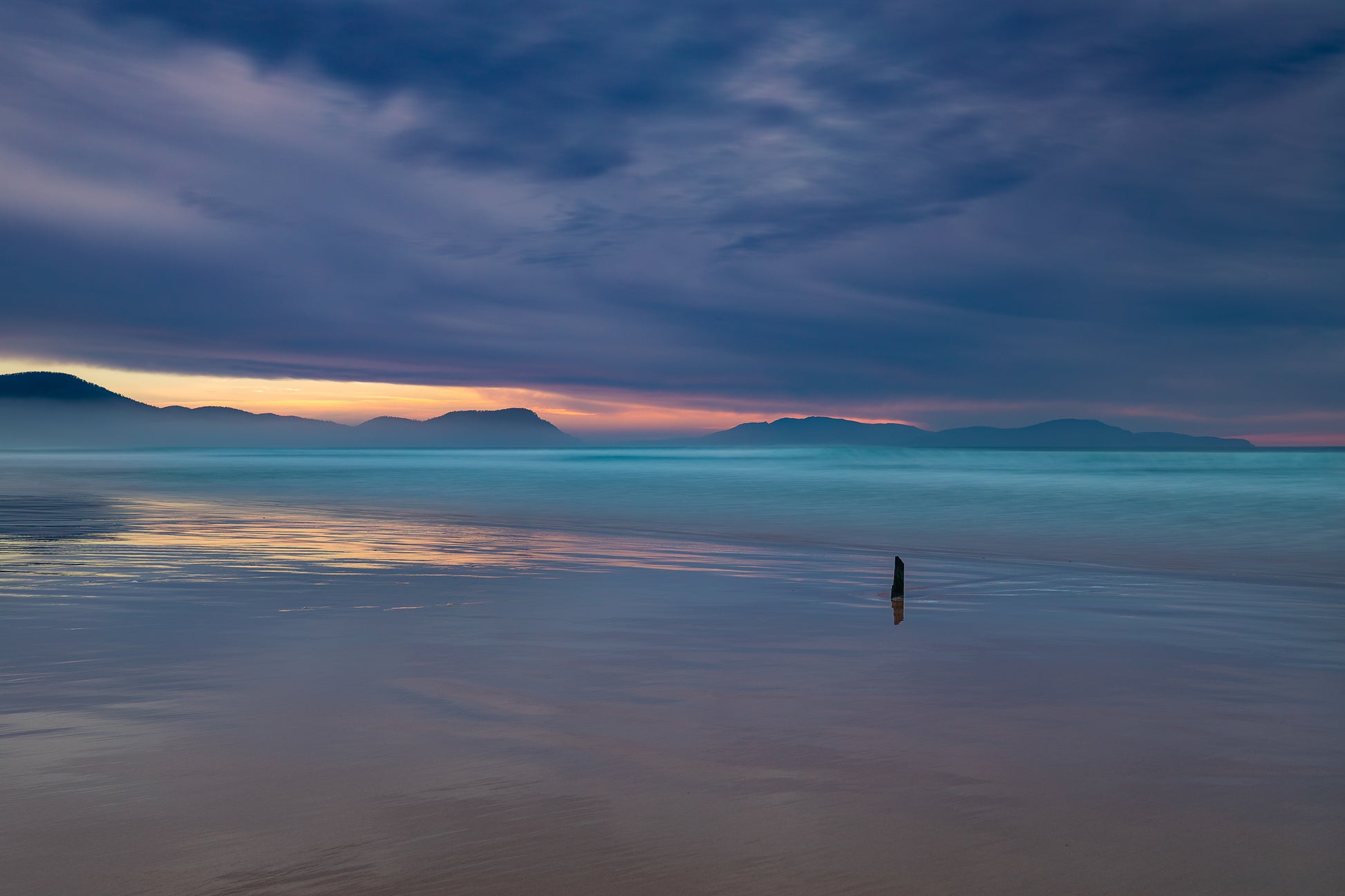 In this beautiful and peaceful spot in Tasmania, the sky and sea dance in blurred lines. The horizon is the only thing that breaks this dreamlike interplay.